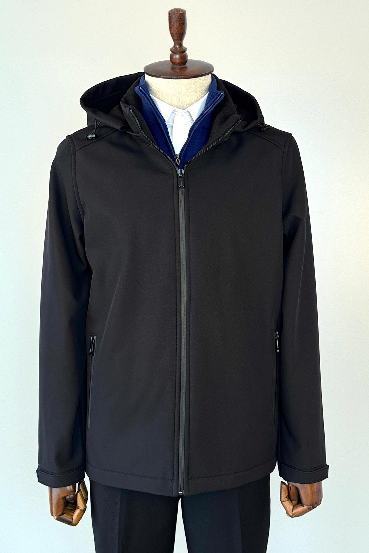 Kapüşonlu İçi Polarlı Siyah Softshell Mont (2806122704601)