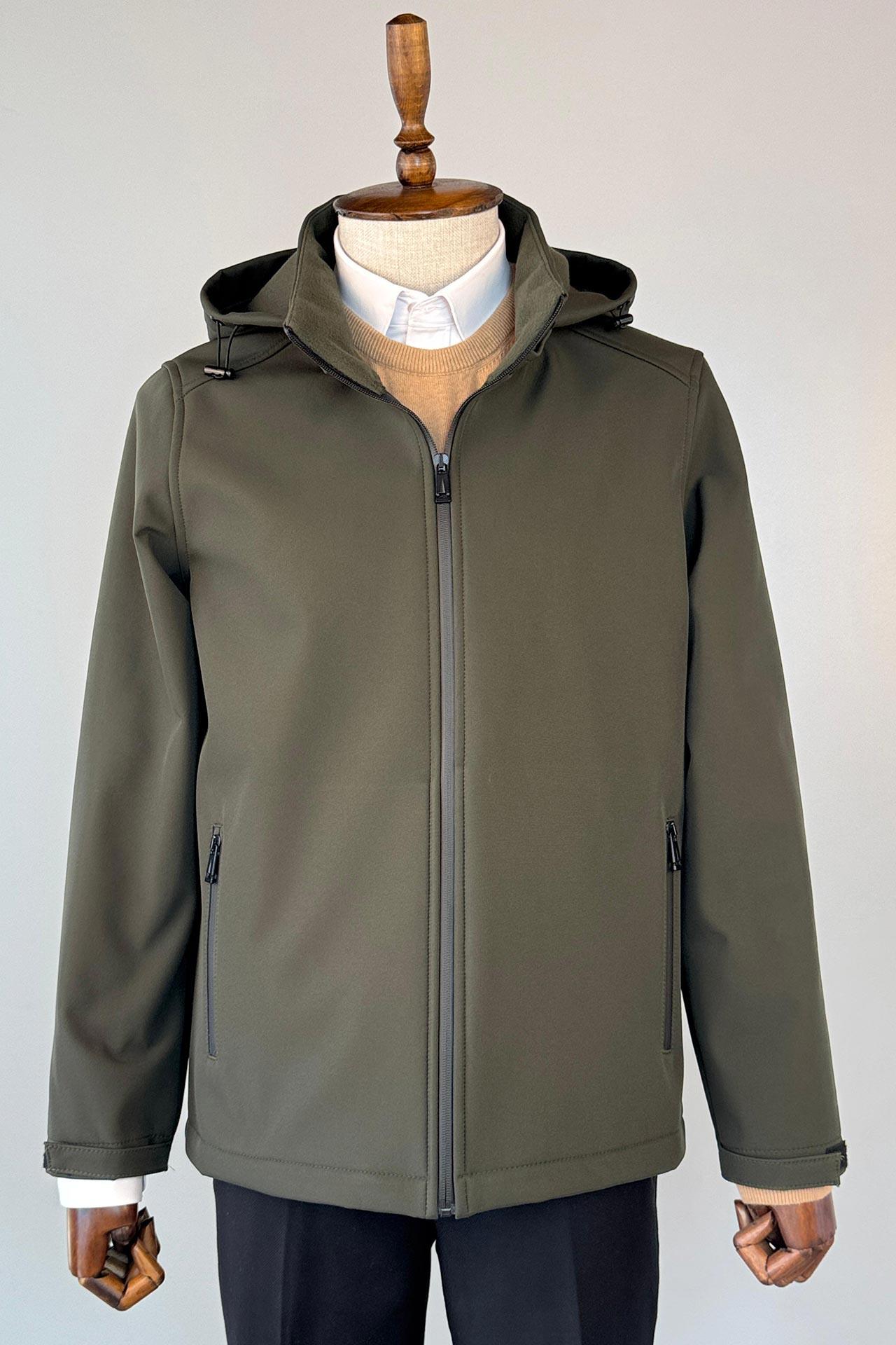 Kapüşonlu İçi Polarlı Yeşil Softshell Mont (2806122704601)
